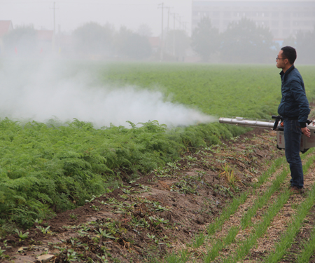 田间观摩主要参观了飞机喷雾、高效王喷雾器、热烟雾机的现场示范,低空低量施药,有省水、省工、高效的特点。现场可以看到,喷出的雾化效果非常好,喷到玻璃上不会聚滴,也不会流下,颗粒非常细。