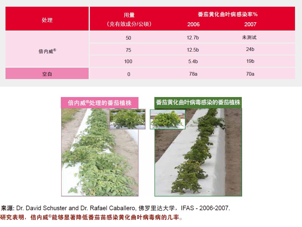 杜邦TM倍内威®处理中番茄黄化曲叶病毒病的感染率