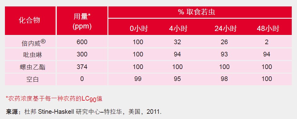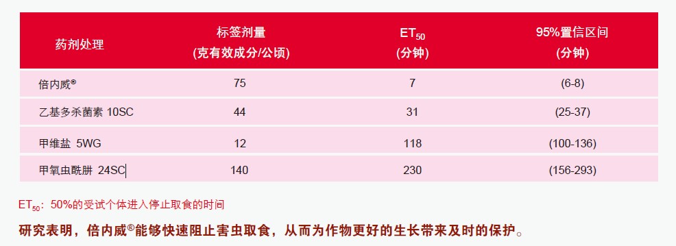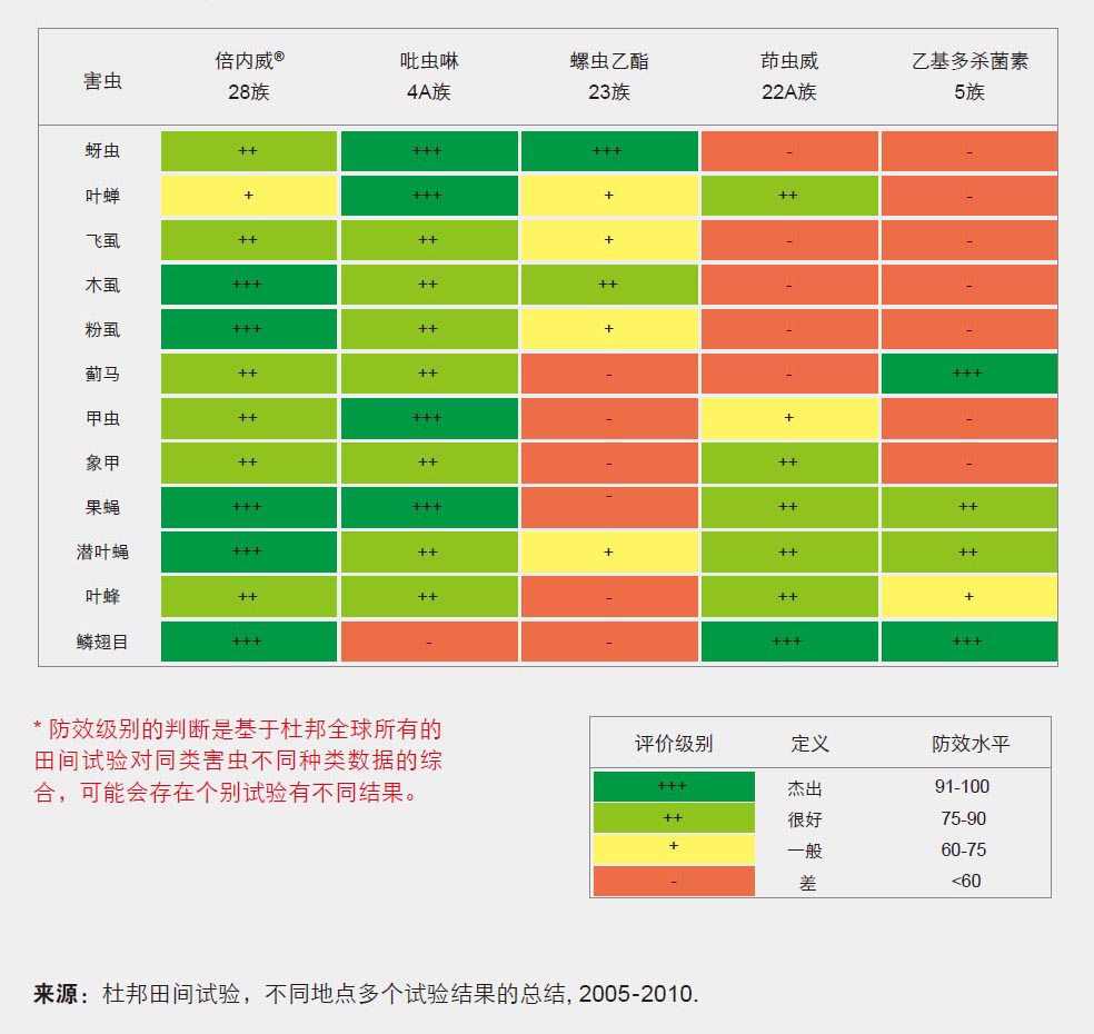 杜邦TM倍内威®与不同作用机理杀虫剂杀虫活性对比