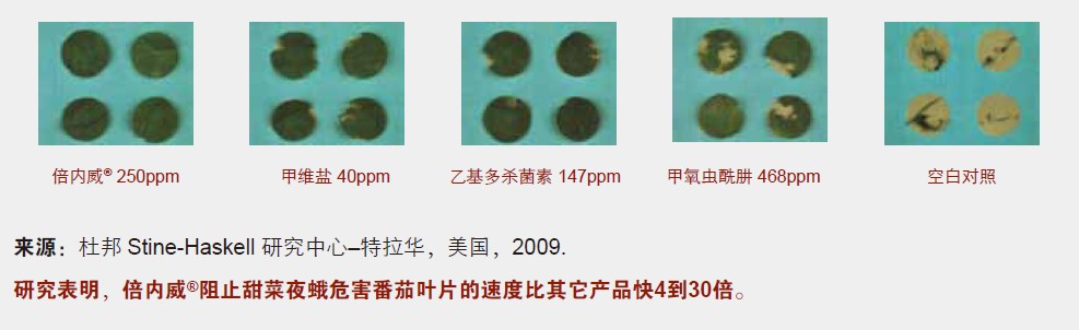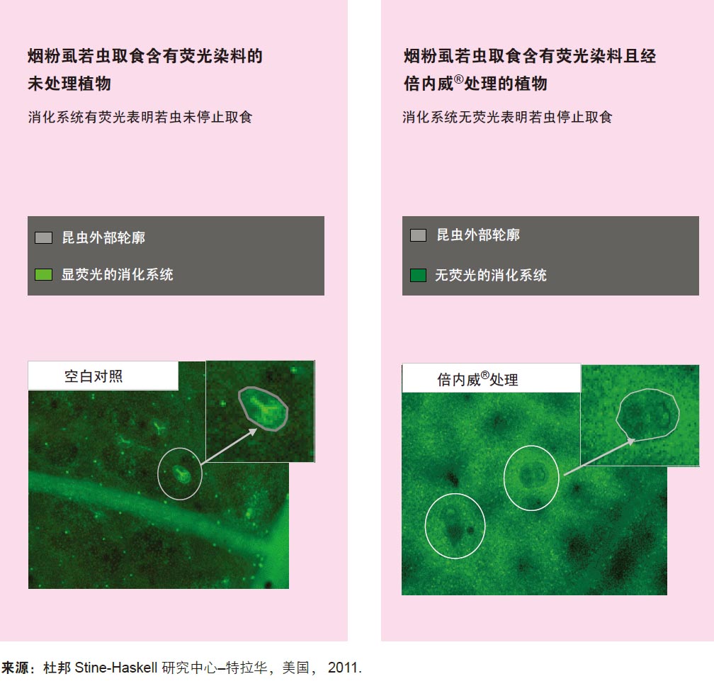 杜邦TM倍内威®快速阻止烟粉虱若虫取食的作用比其它产品更高效。