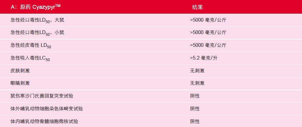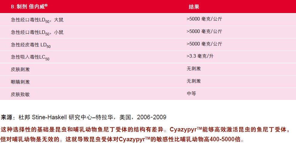 研究表明当按照标签推荐方法使用时,CyazypyrTM对环境影响非常低