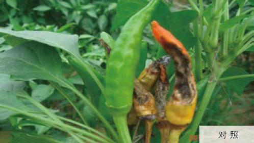 | 对照田:辣椒炭疽病发病严重,辣椒品质下降,产量降低。 | 杜邦TM阿砣®:辣椒果实健康,品相好。 |