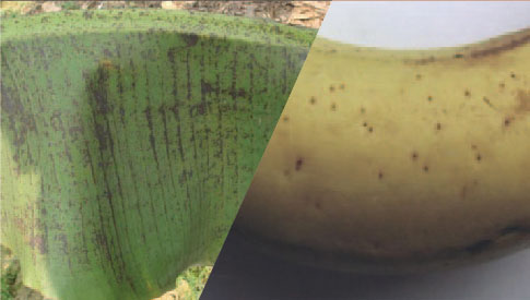 发病前施药,到收获期时蕉果的表现。