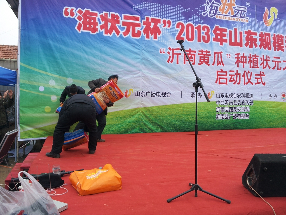 2012年12月15日,由山东广播电视台主办、山东电视台农科频道承办、中国海洋大学生物工程开发有限公司协办的“海状元杯”2013山东规模种植状元大赛在黄瓜之都沂南拉开帷幕。在现场的人们感受到了沂南黄瓜种植户的热情,仅仅在上午前来报名的种植户已超过千人,据了解,除了这次依汶镇的农户外,其他乡镇也来了很多种植农户。