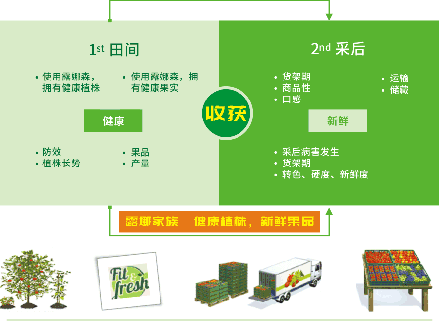 露娜森,减轻了果实采收后的病害发生,延长了货架保鲜期,降低了运输、储存、货架陈列和购买后的损失,为蔬果从种到购买的各个参与方带来价值,是生产高价值蔬果的必要之选。