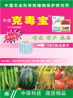 - 防病治病:喷施后快速渗入植物体内,能诱导植物抗病基因的表达,从而提高抗病相关蛋白,多种酶和细胞分裂素的含量以提高抗病能力,抑制病情发展,喷施后不仅快速钝化植物体内外的病毒,而且能有效阻止病毒扩展。