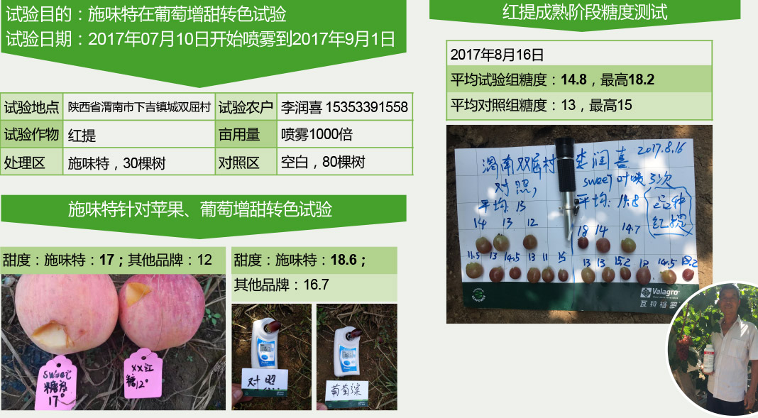 | 贴士 施味特™增加糖度和果实质量效果稳定,更加推荐在绿色果实品种上使用 |