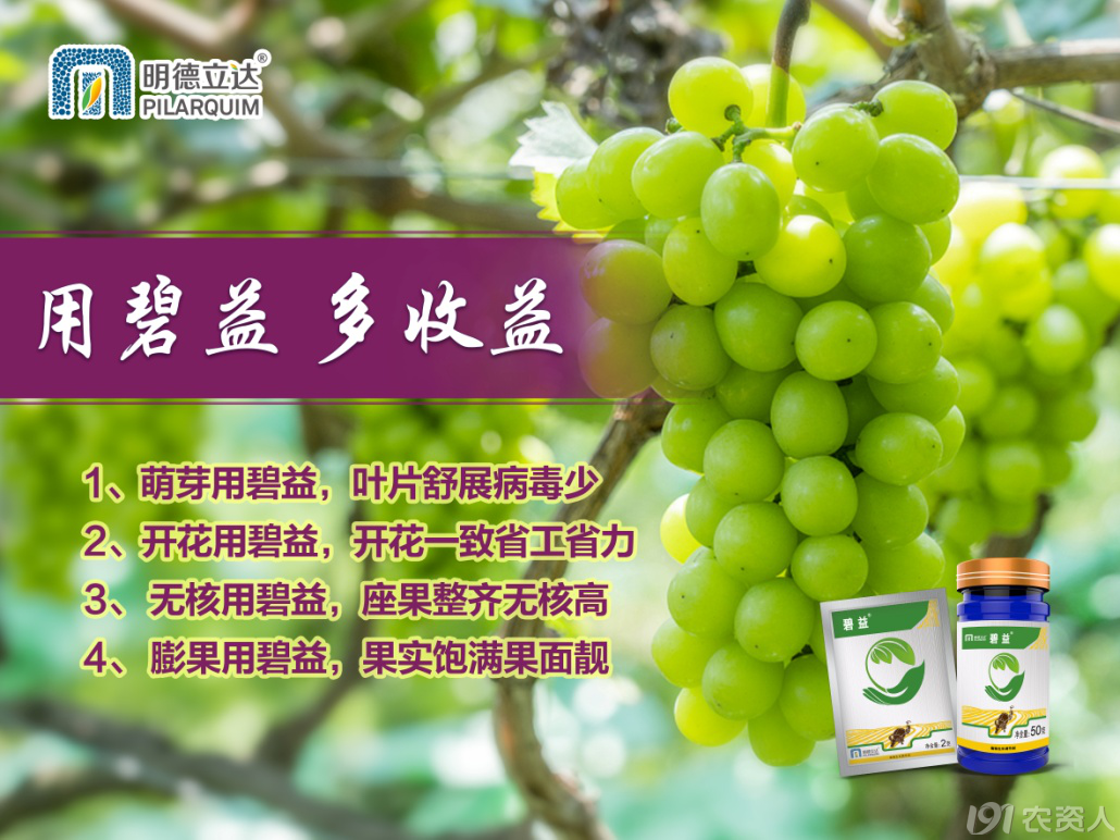 碧益®,0.136% 14-羟芸·赤·吲乙可湿性粉剂,是国内企业首个三元复配植物生长调节剂。芸苔素内酯是调控植物生长和保护作物安全的万金油,赤霉酸能够打破休眠、促进作物生长,吲哚乙酸能够促进生根和花芽分化,三者的科学复配具有很高的技术要求。自2018年10月上市以来,碧益®凭借保花保果、促根壮苗、催花膨果等方面的独特优势,年销售额快速突破3000万元,引发农资行业追捧,也是明德立达再次强势进军植物生长调节剂领域的亿级战略大单品。