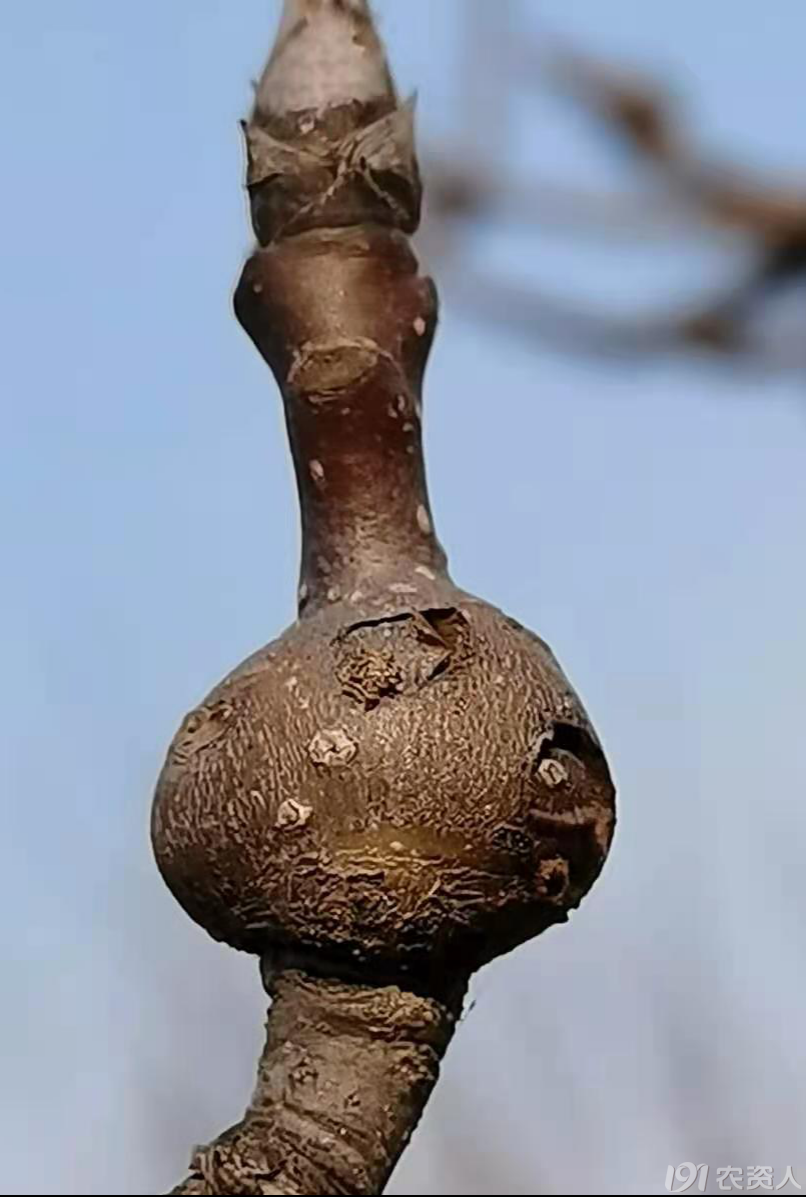 想了解更多果树栽培知识,添加小编微信近日在梨园发现梨树枝条上长了很多疙瘩,有单个的也有几个连成一串的,并且形态各异发生很重,目测枝条发生率在60-80%之间,仔细观察还发现每一疙瘩上都有一个孔洞,剥开疙瘩里面是一个虫蛹,原来这些疙瘩是梨瘤蛾的瘿瘤。