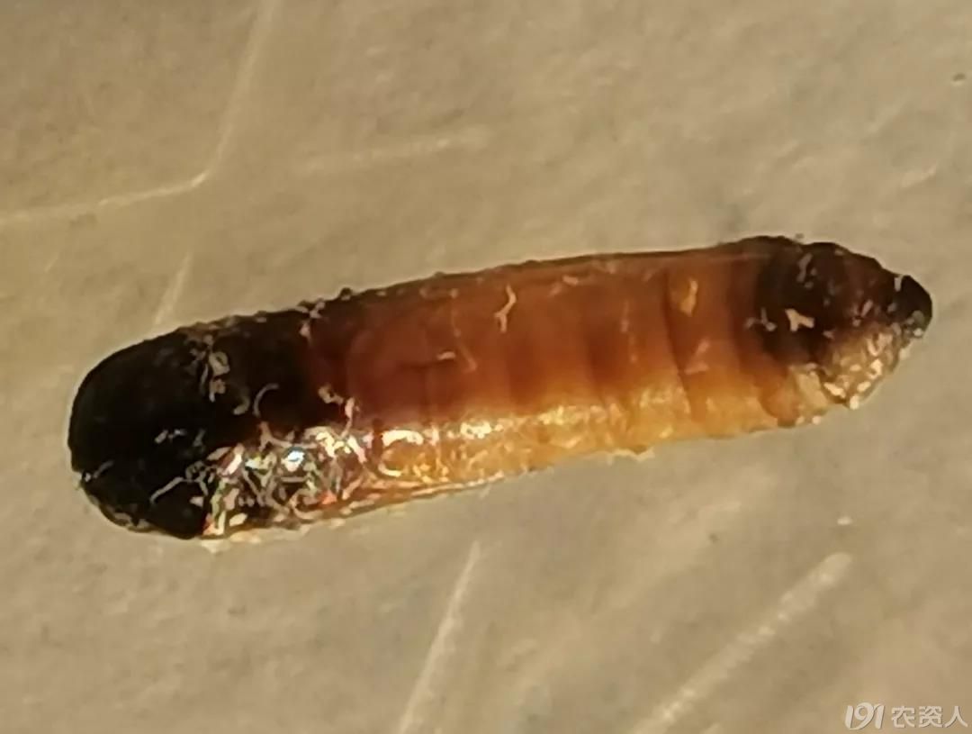 蛹:蛹长5~6mm,初为淡褐色,将近羽化时头及胸部变为黑色。