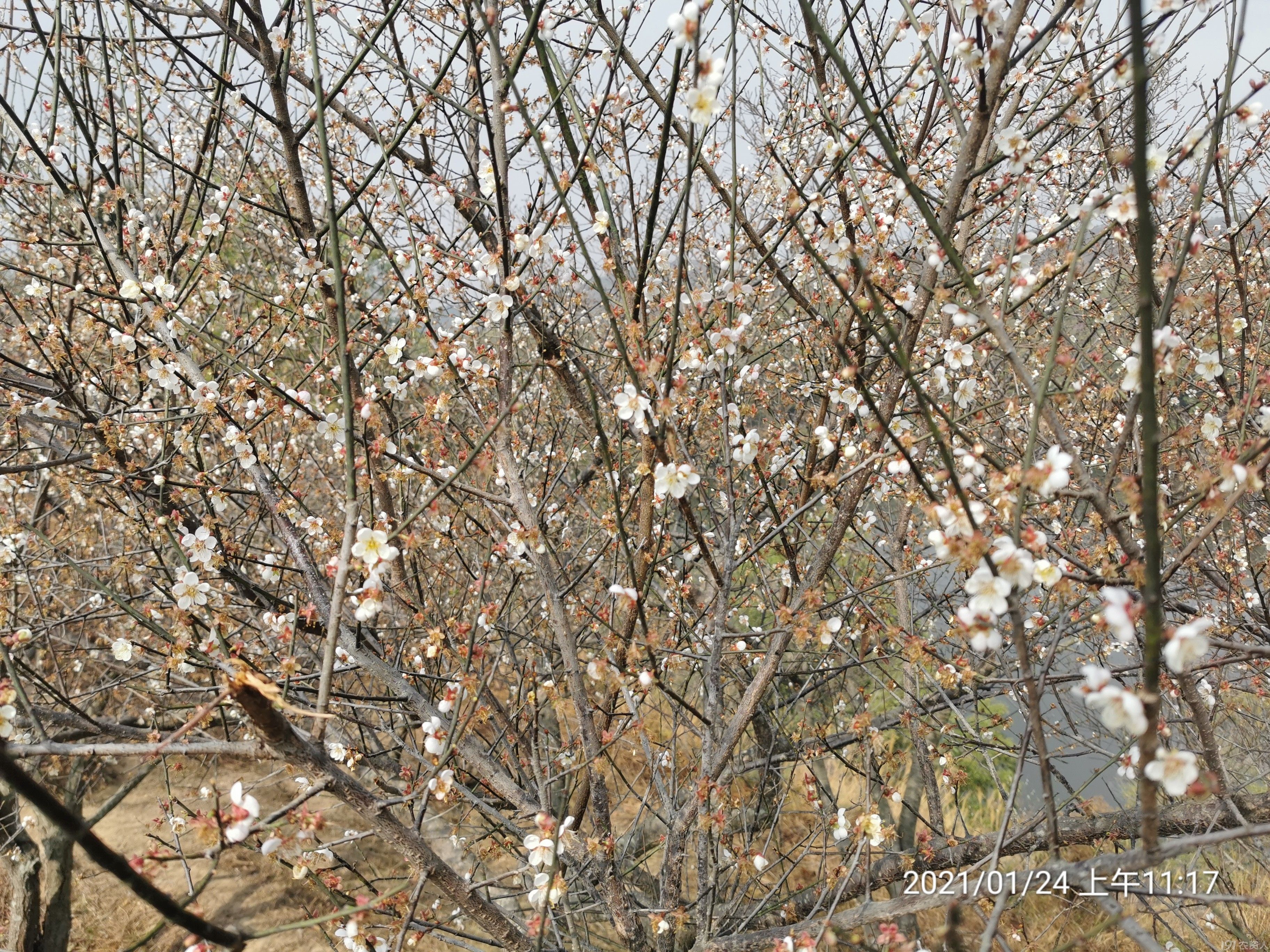 桃梅园里只见有一棵桃花树绽放,而梅花已过了最佳欣赏期。