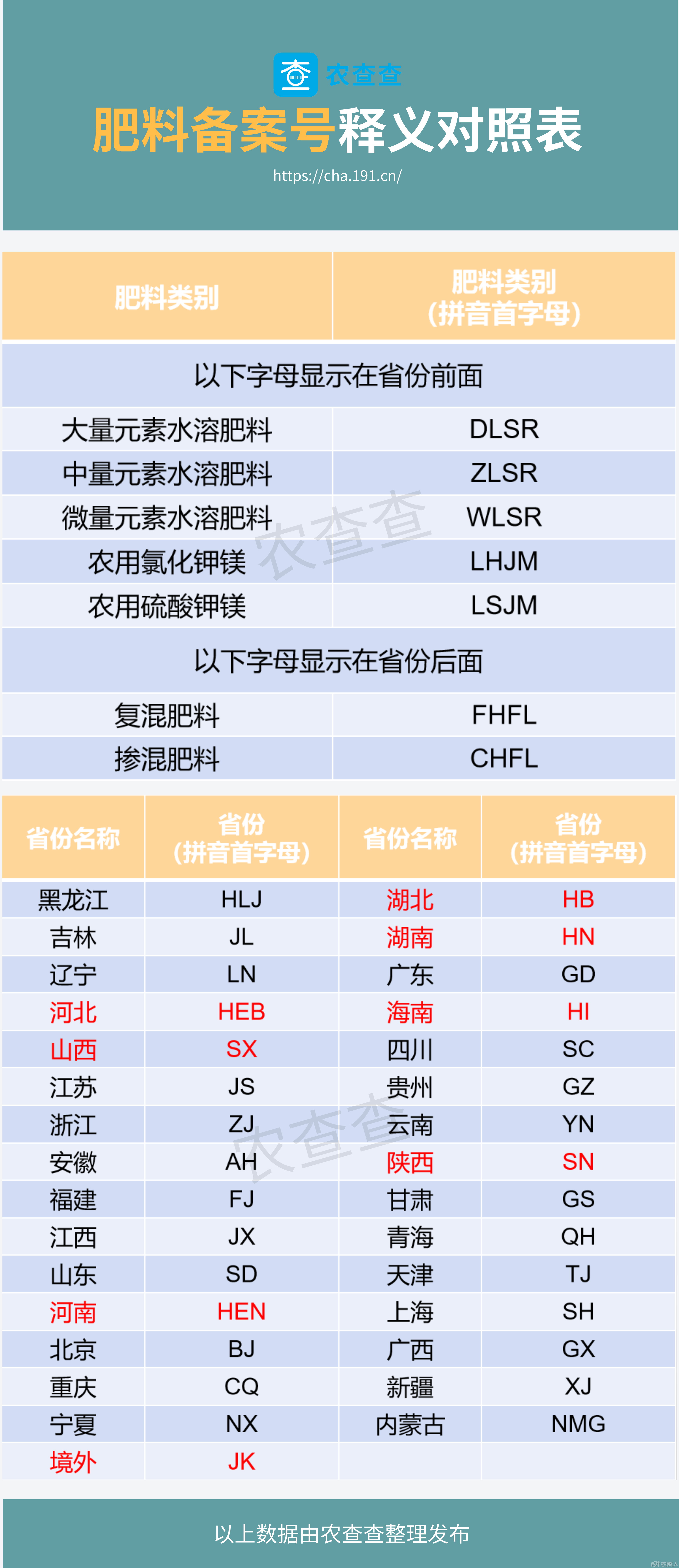 接下来,农查查将为您提供一个备案号的对照表,方便对比: