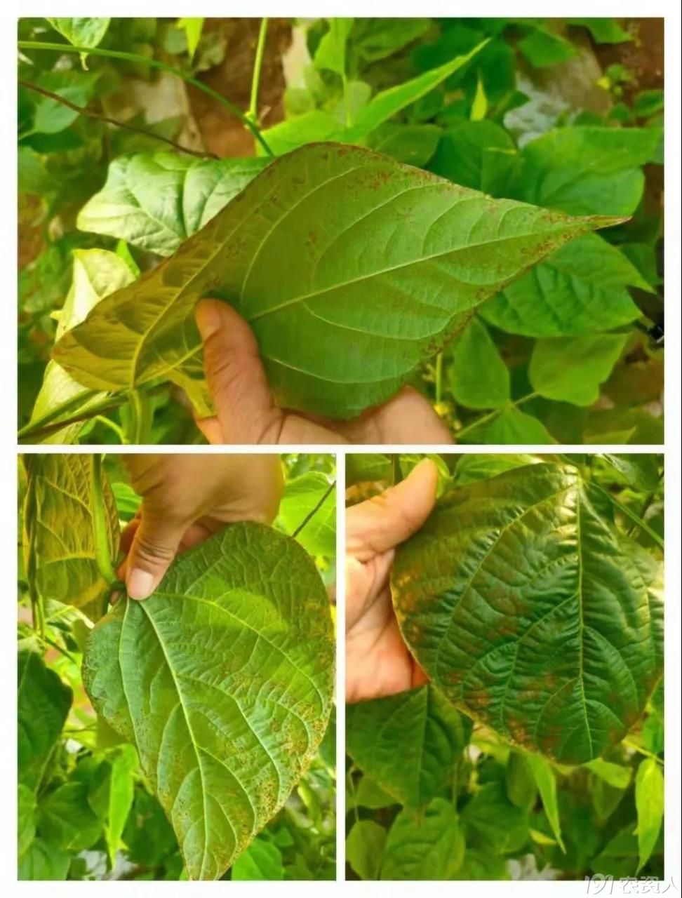 上面杀虫剂药害,豆角用药要非常注意,杀虫剂尽量不要几种复配在一起用,另外豆角除了忌铜忌氯,对锰锌制剂、菌核净、嘧霉胺、咪鲜胺、乙霉威、乙磷铝、三唑类、有机磷类杀虫剂、联苯菊酯等药剂均十分敏感,如喷用含代森锰锌成分较高的药剂或施用浓度过高时,叶片表面会变得暗淡无光,使植株提前老化,叶发黄,或导致落叶。若喷施嘧霉胺或菌核净防治灰霉病、菌核病,所造成的药害远远要比病害本身严重得多,导致落花落荚,甚至植株死亡。三唑类药剂喷施后,植株生长缓慢,严重时叶片出现皱缩变形。还有用甲氧基丙烯酸酯类的杀菌剂禁止与杀虫剂一起复配用在豆角,有可能让叶片全部变黑萎蔫。