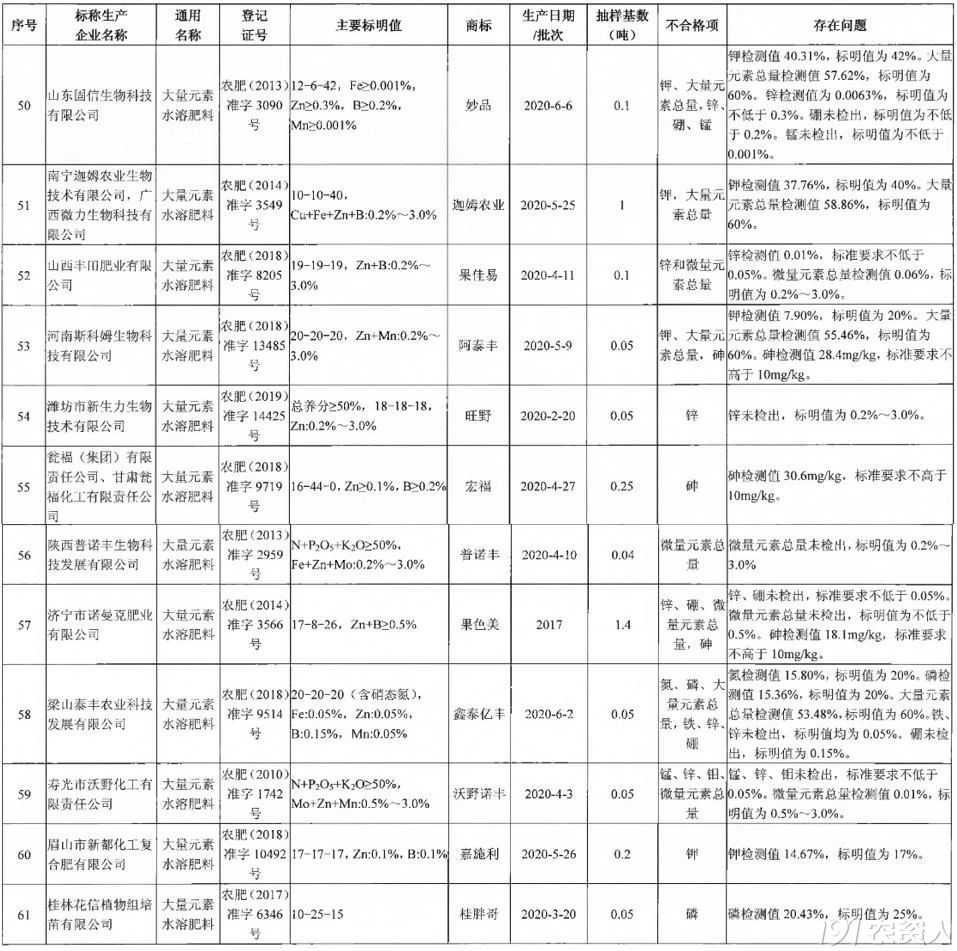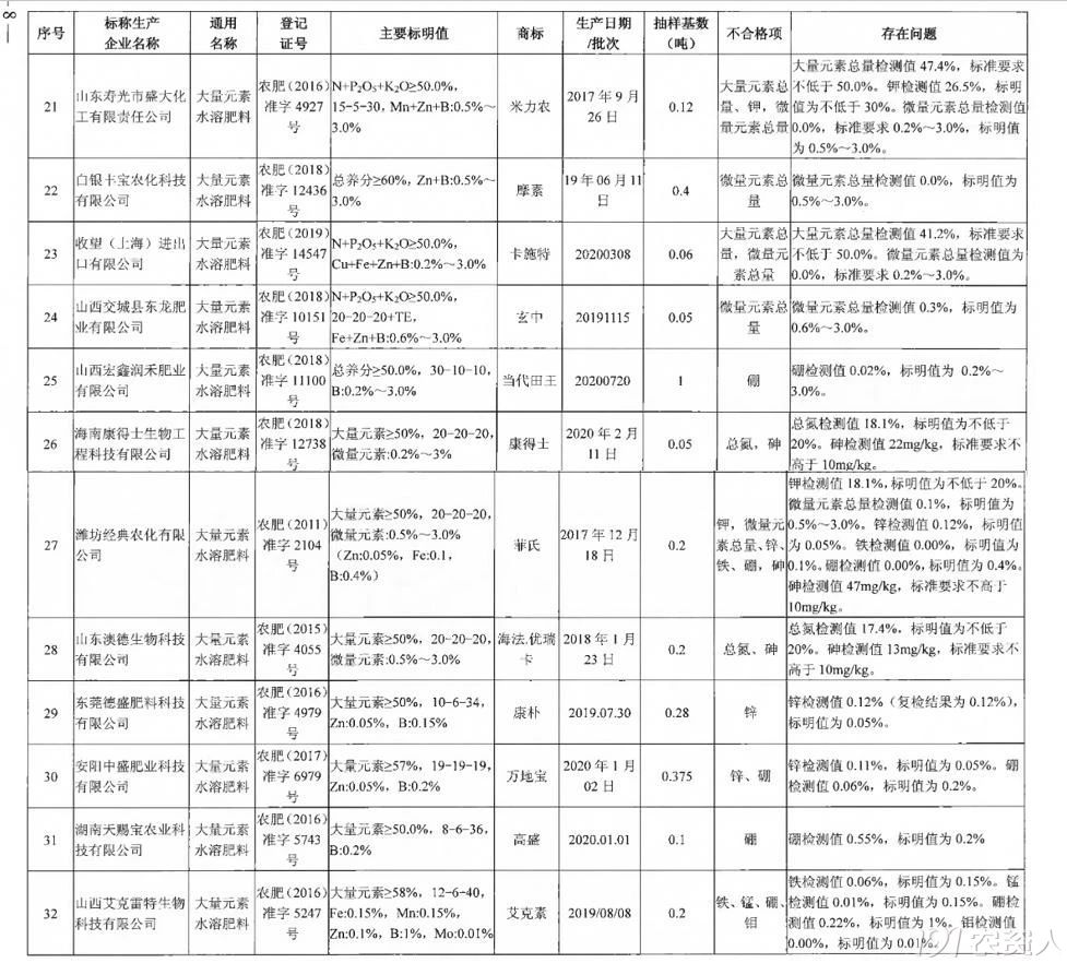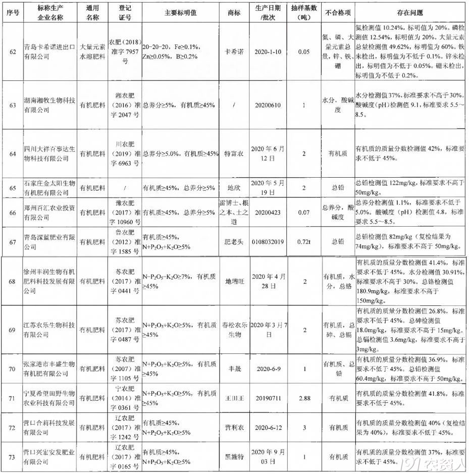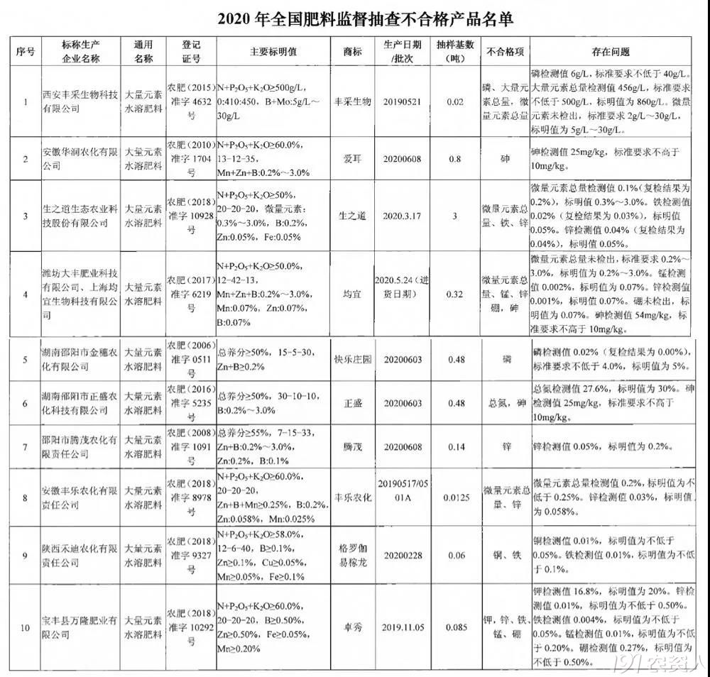 2020年全国肥料监督抽查不合格产品名单如下(点击可看大图):