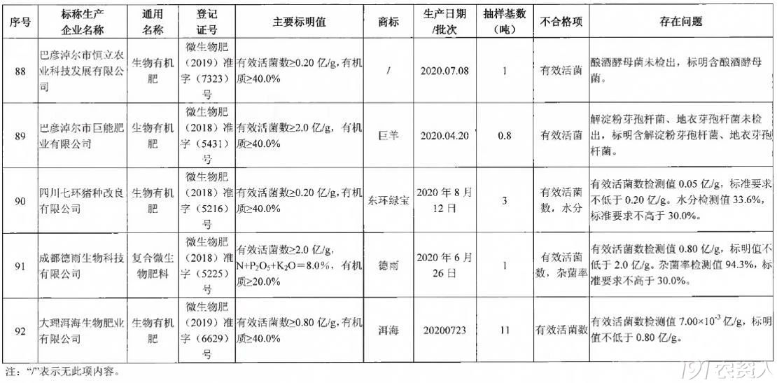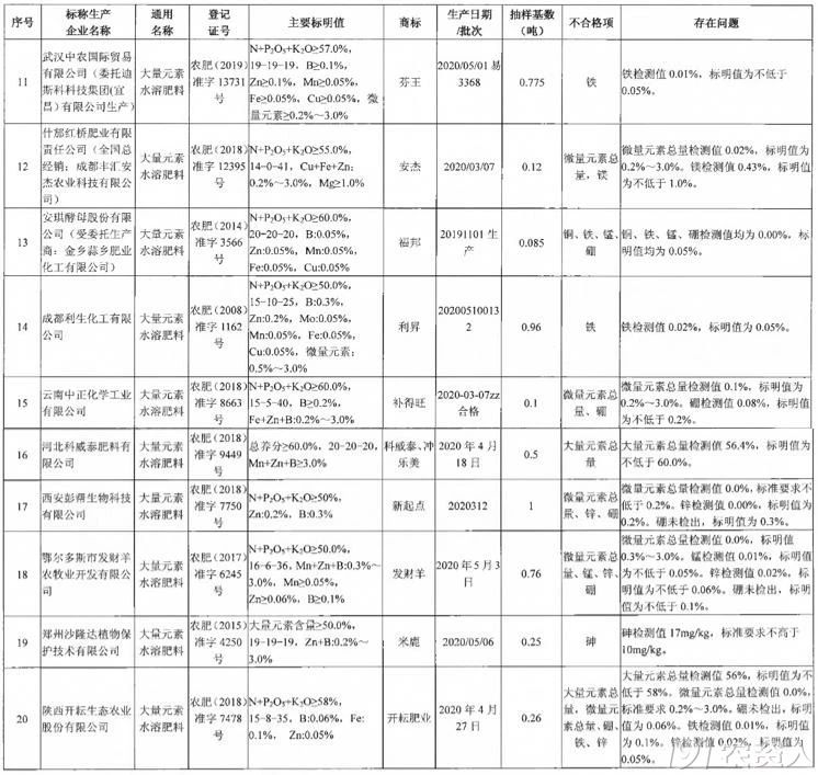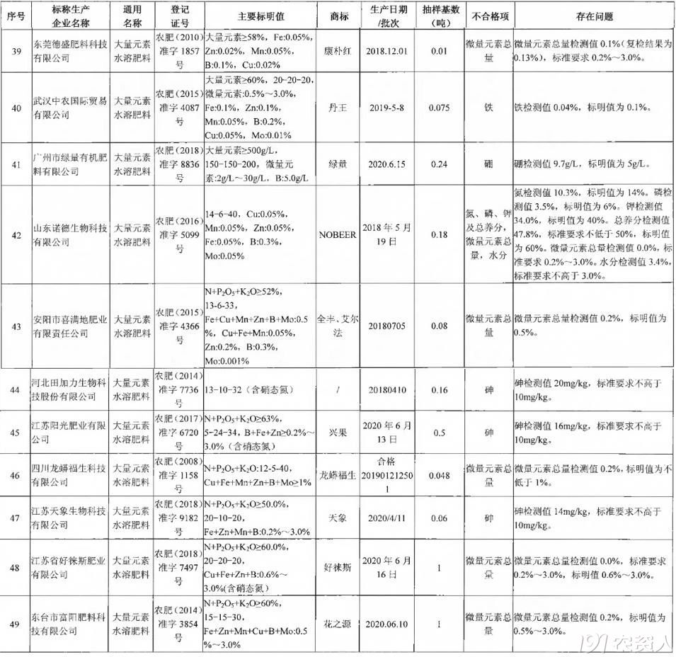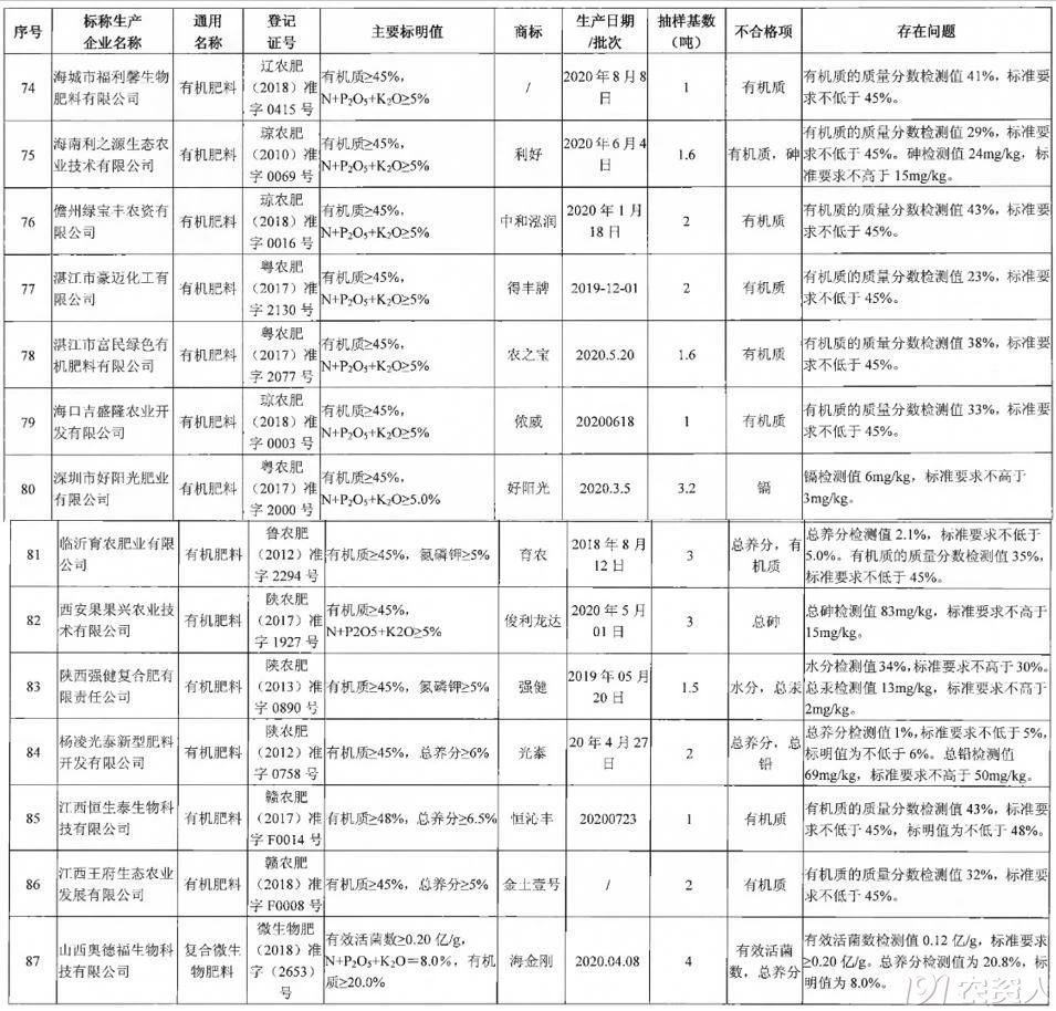 2020年全国肥料监督抽查不合格产品名单如下(点击可看大图):