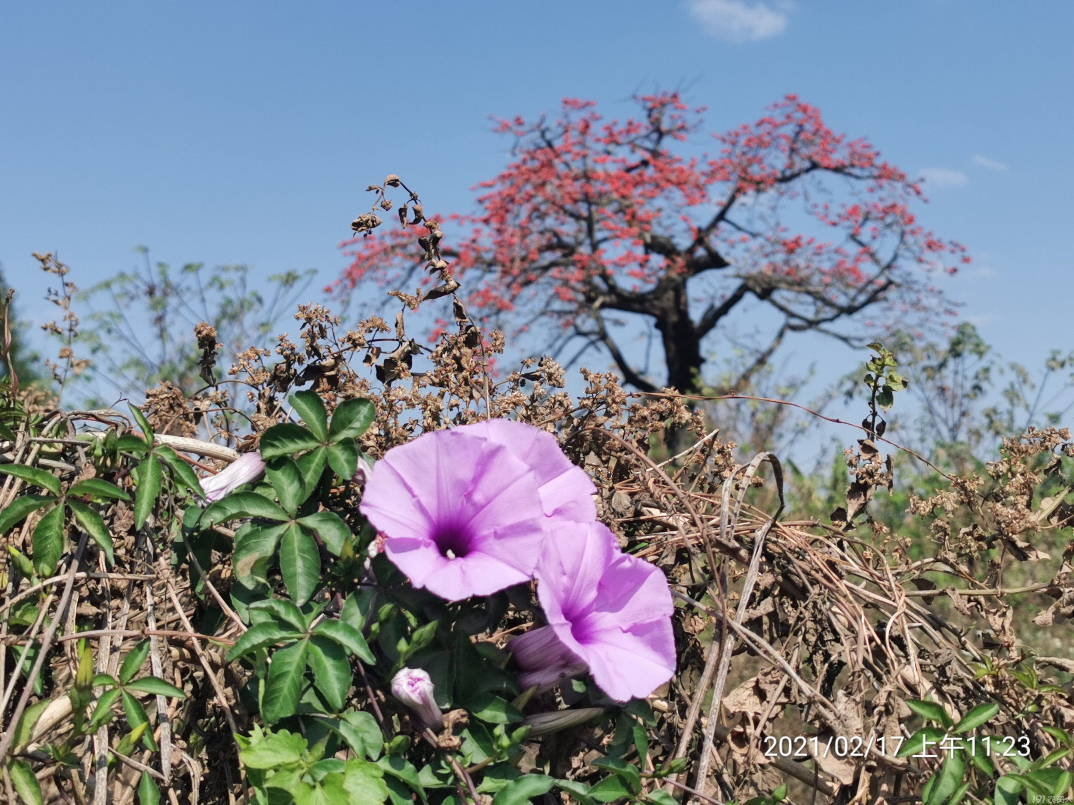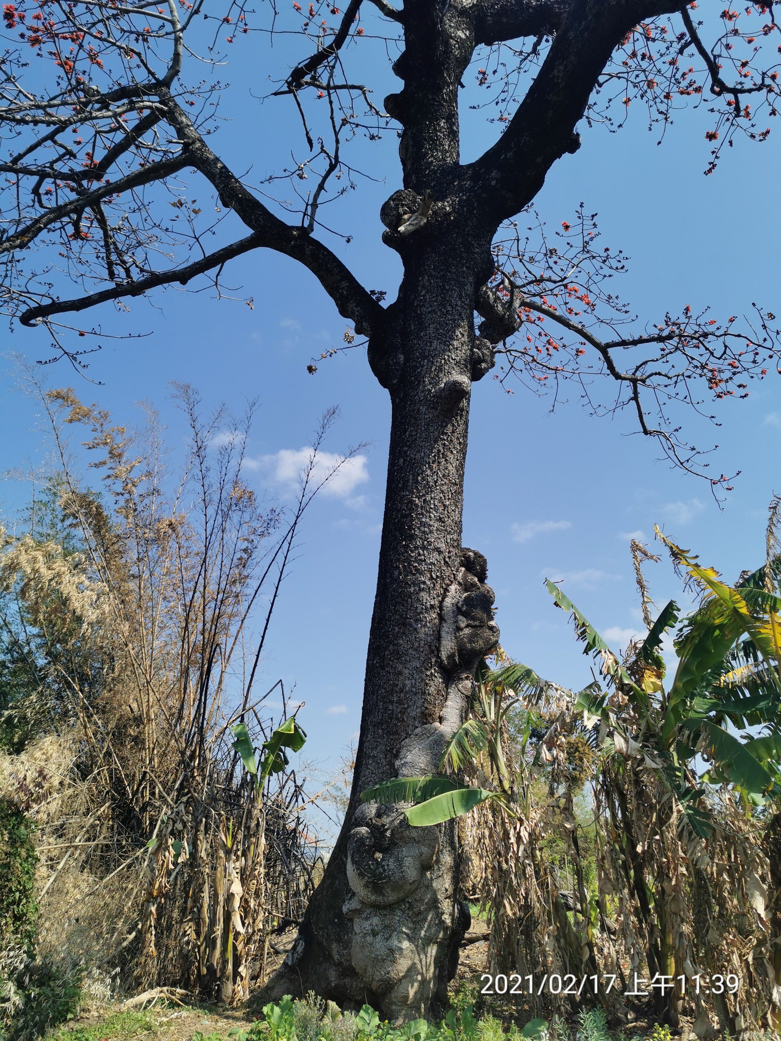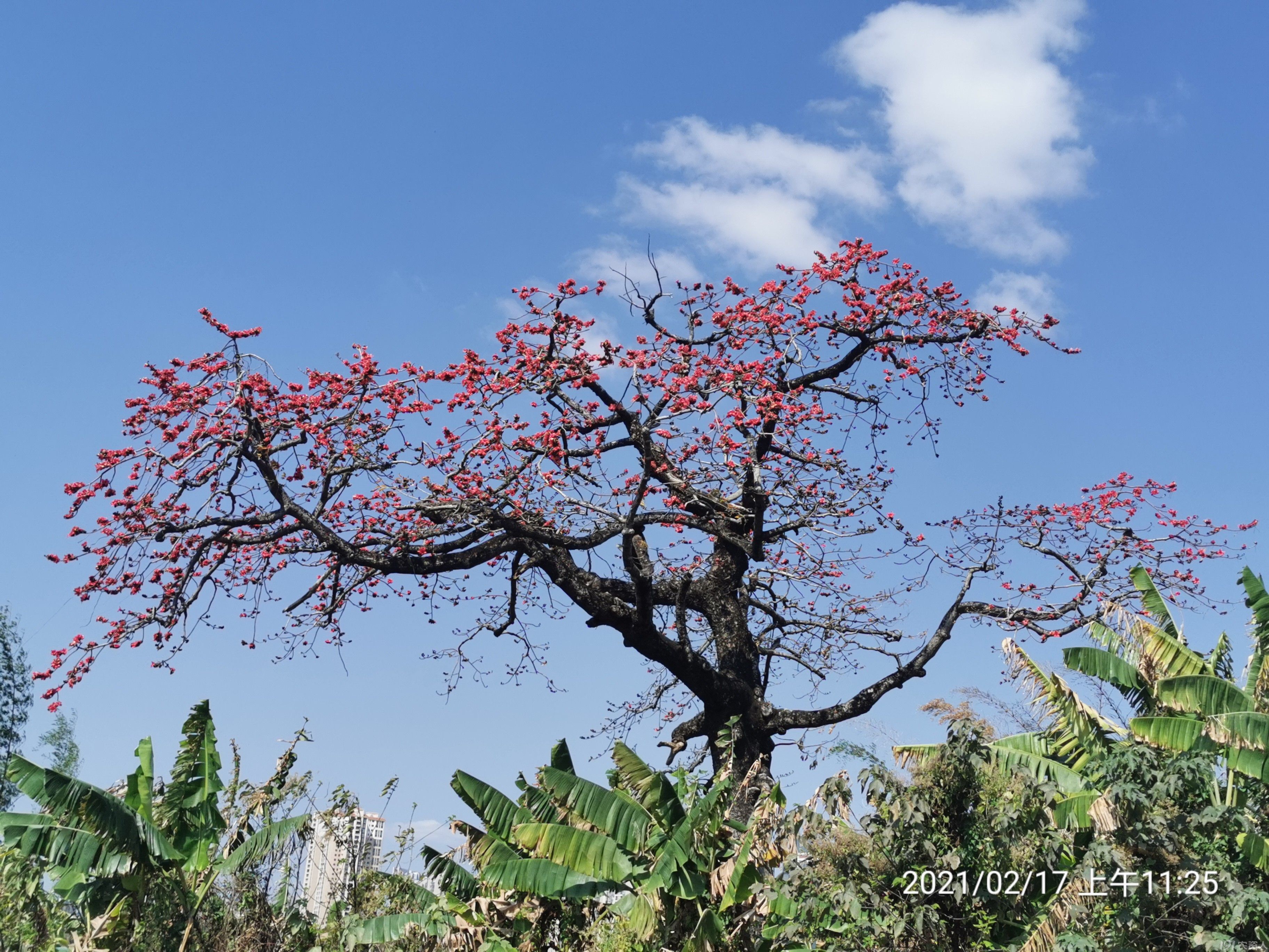 回来路上,想起另一头江岸的两棵老木棉,应也是老树开花、花开满树了吧,在这明媚而带着凉风的时候去欣赏,应是非常惬意的事吧。