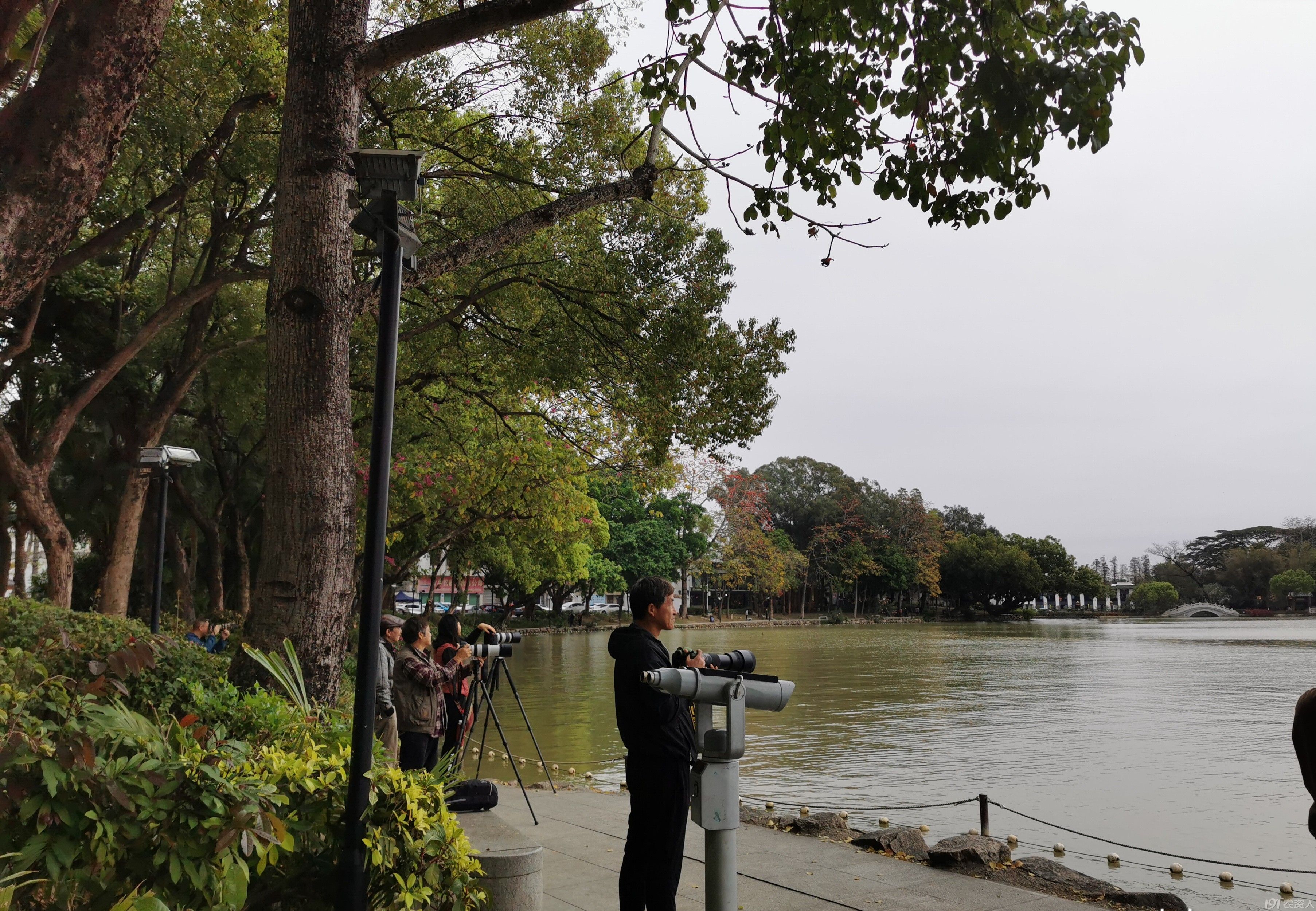 一开始,我以为苍鹭在捉鱼,走到摄影爱好者那儿,才发现苍鹭是在叼树枝,叼回去筑巢,准备生蛋孵化,繁衍后代。