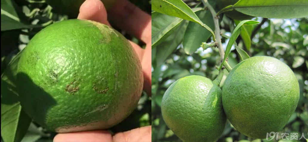 图注:柚子叶针刺8天后观察,左侧为空白,明显有伤口感染及扩散,右侧为“硕亮®”处理,伤口快速愈合