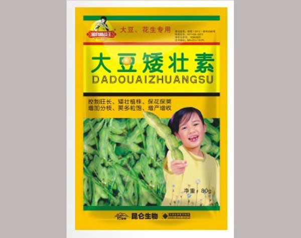 大豆矮壮素根据大豆生长发育规律而研制,施用大豆矮壮素能降低大豆株高8-12cm,促进根瘤的形成。改善群体透光条件,提高氮素营养。促进光合产物往籽粒和干物质的积累,提高产量,对照比、株高矮12%-23%,茎粗增加0.3%,荚数增加5.6-8.99%个,百粒重高0.68-1g,蛋白质含量增加8-20%,脂肪含量提高12-21%,一般增产30%以上。