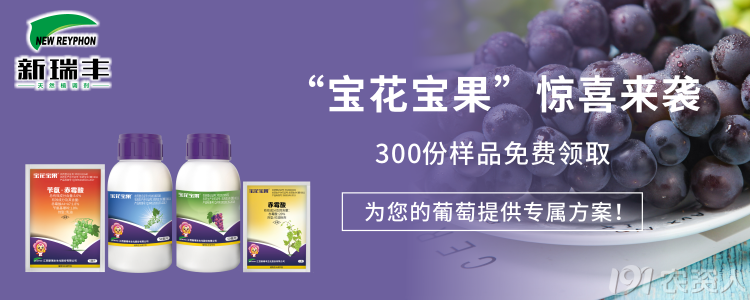 为帮助更多葡萄种植者找到最优葡萄种植方案,即日起新瑞丰为葡萄种植户、葡萄领域技术服务专家带来300份样品免费试用!根据申请用户种植葡萄品种不同,符合要求者企业将根据不同葡萄品种,在葡萄拉花、保果、膨果、上色方面提供整套方案,种出优质葡萄!