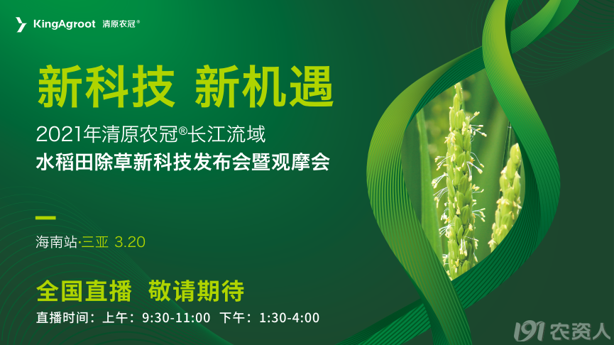 新科技新机遇,清原农冠长江流域水稻田除草新技术发布会暨观摩会将于2021年3月20日在海南三亚隆重召开,特邀您的到来,一起感受科技的力量,迎接创新带来的希望!
