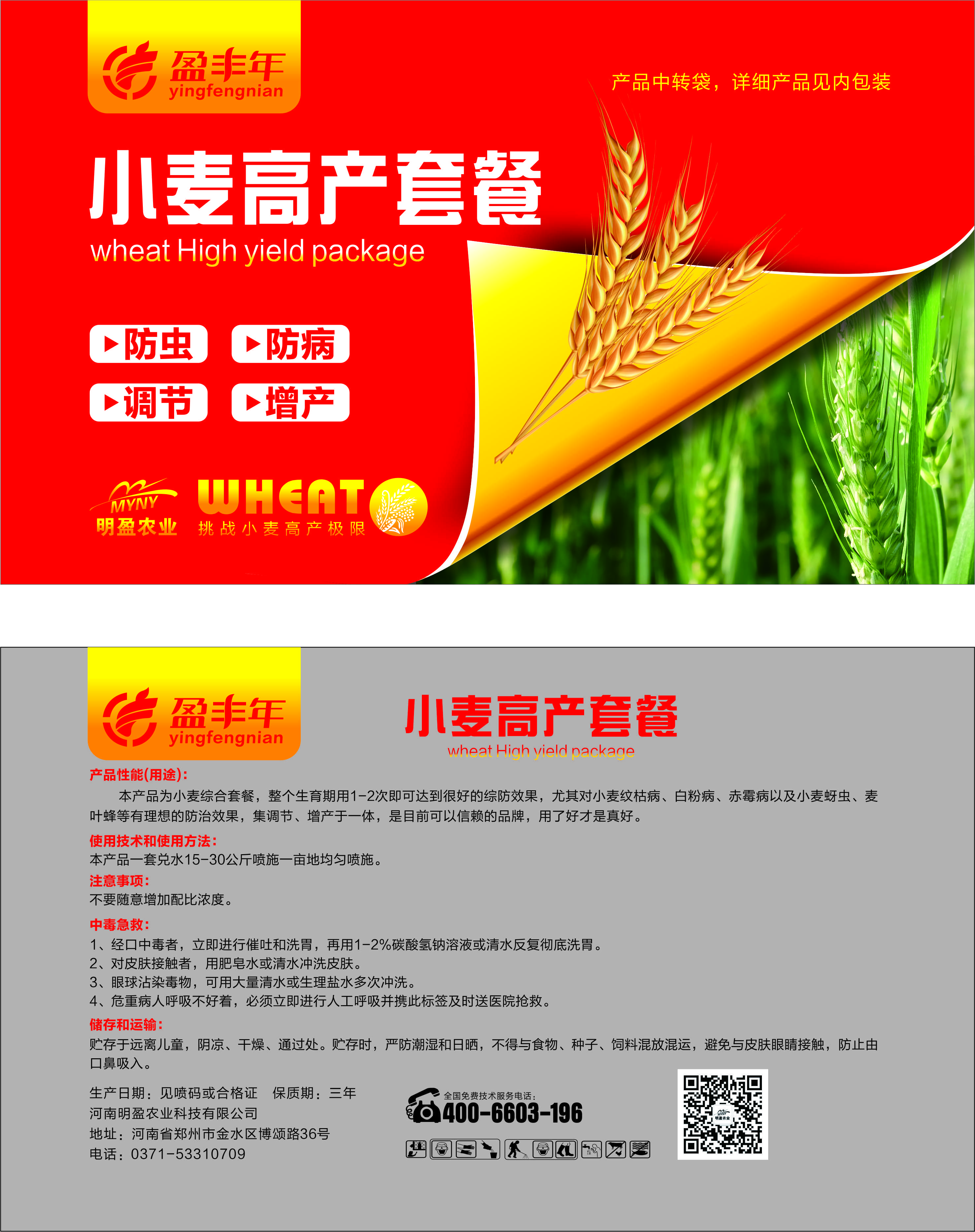 盈丰年小麦高产套餐,集杀菌、营养、调节、增产为一体。具有多效合一,方便省心,增产增收的功效。广泛适用于大田作物以及经济作物,自上市以来得到广大农户的一直认可,特别是在小麦增产方面,通过对打过盈丰年套餐三遍的农户进行测产,一亩地至少增收200元。
