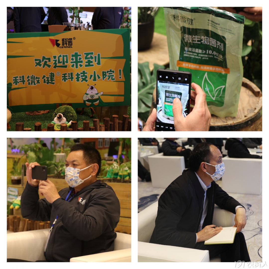 会上,科诺市场部经理孙刚忠先生,为大家隆重发布了行业内首款菌胶体产品——科微健®。科微健®的神奇功效就源于科诺独创性地开发出的菌胶体形态,这是活菌与中性黄腐酸反应形成的一种独特结构,具有“多、快、好、省”四大特点:三元复配功能多,10亿/克的枯草芽孢杆菌+胶冻样类芽孢杆菌,并且含有50%以上的矿源黄腐酸,10%以上的氧化钾;吸收养分启动快,缩短调整期,2小时快速启动,提升有益菌数量和活力,抑制病原菌;三9速溶剂型好,菌胶体是胶融状态与水溶解,溶解会非常充分,全水溶,不会分层;提高肥效成本省。