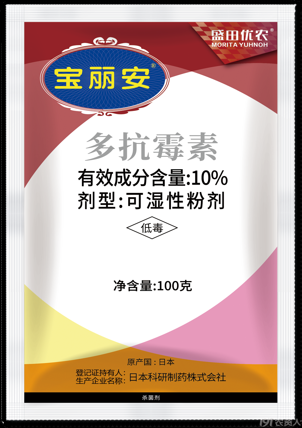 宝丽安®的有效成分“多抗霉素”是1961年在日本九州阿苏地区的土壤中发现的微生物(可可链霉菌Streptomyces cacaoi var.asoensis)所产生的代谢物, 日本科研制药株式会社以此为基础,通过可可链霉菌的代谢物,发酵生产的天然物质。研制成生物杀菌剂-宝丽安®;“多抗霉素”的构造是一种含有多种成分的复合体, 每种成分都有氨基酸和核酸结合的分子构造。