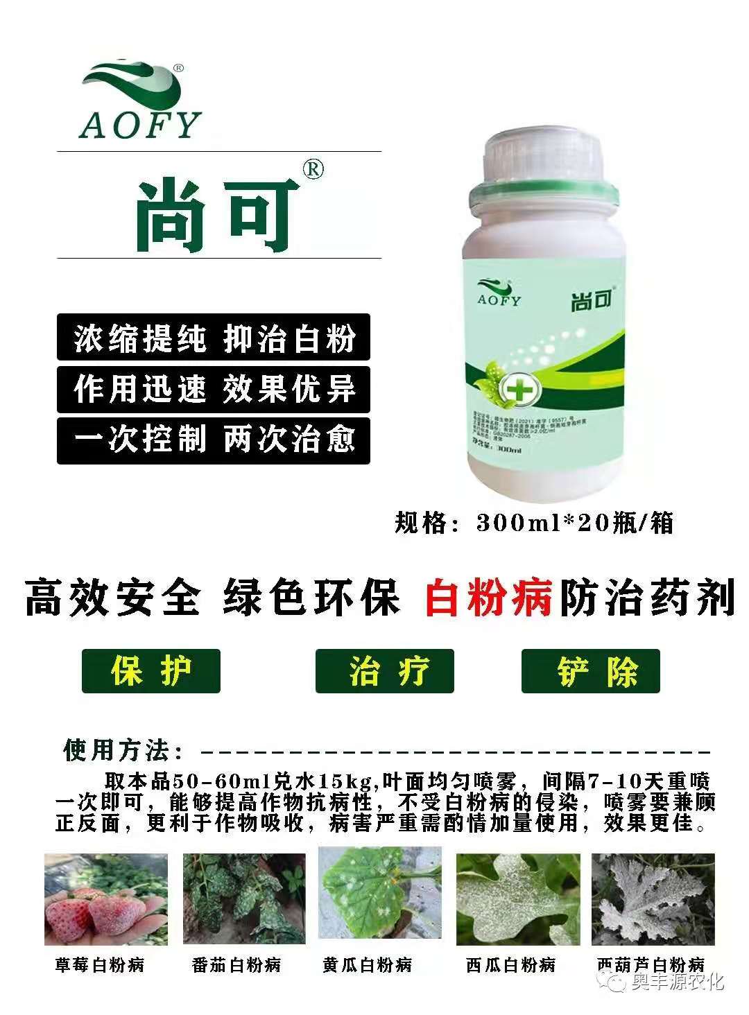 ③平衡施肥:增施有机肥、磷、钾肥,避免因氮肥过量而贪青旺长。薄嫩的表皮更容易遭受白粉病病菌的侵染,在作物快速生长阶段,除了注意土壤平衡施肥,配合淋施海精灵生物刺激剂外,还可叶面喷施磷钾源库,帮助加快幼嫩器官老熟,调节作物营养,提高植物的抗病能力。化学防治:①尽早防治:白粉病菌落在叶片上即可发芽侵入,1天叶片表面就可长出菌丝体,5天侵染处形成白色菌丝丛的病斑,7天病斑老熟并产生分生抱子飞散传播。此时病菌繁殖数量快,病害流行也快。所以,在病害发生初期进防治是十分重要的。