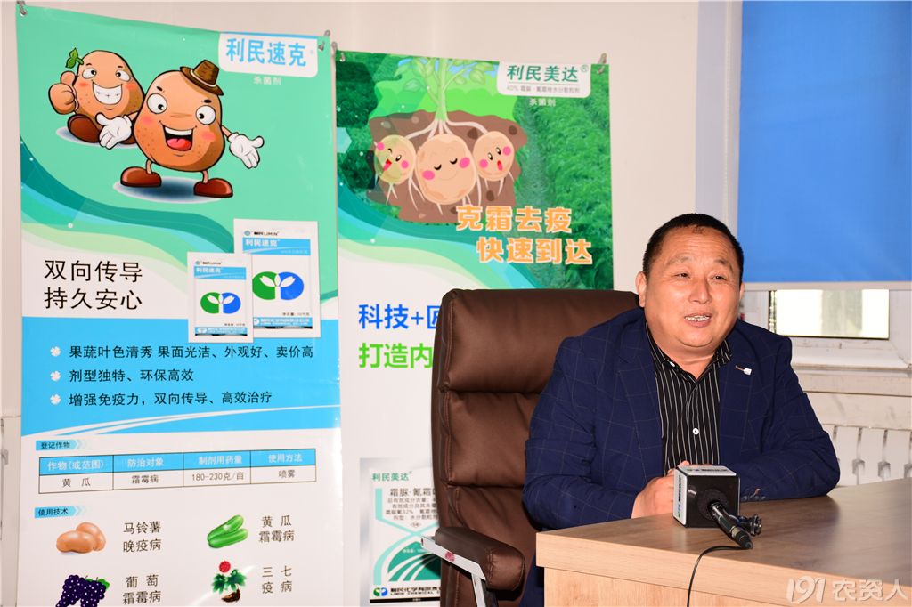 利民化学作为国家定点农药制造骨干企业,始终践行“精于植保科技、创造品质生活”的使命,与各方一道助力中国农业绿色、健康发展。始终坚持为全球的种植户提供“高效、低毒、低残留”的农药产品和高品质的服务。”有好药,更要“用好”药,科学安全地使用农药,在保护自己和环境安全的同时增产增收是我们共同的目标“。刘经理介绍到,2015年,利民化工启动马铃薯专项团队,2016年开始进行马铃薯产品登记,2017-2019年,不间断地进行产品及产品组合效果验证试验,优化产品配方,2020-2021年,马铃薯植保产品陆续上市,迎来产品资源释放期。利民化学提供的利民速克®、利民美达®、利民翠绿®、利博瑞®等产品,其中速克®对马铃薯晚疫病上下传导好,药喷到上部叶片,下面叶片也有药,从而达到杀灭马铃薯病害的作用,减少腐烂,无再次侵染,且持效期长,施药方式多样,可滴灌、叶喷。对提升农药减施增效,推进农产品提质增效,生产更好的土豆,卖出更好的价钱做出了表率,进而造福马铃薯种植户。