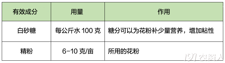 2. 水中加入白糖,给花粉提供养分,保证花粉的活性,增加花粉粘性,提高附着率;