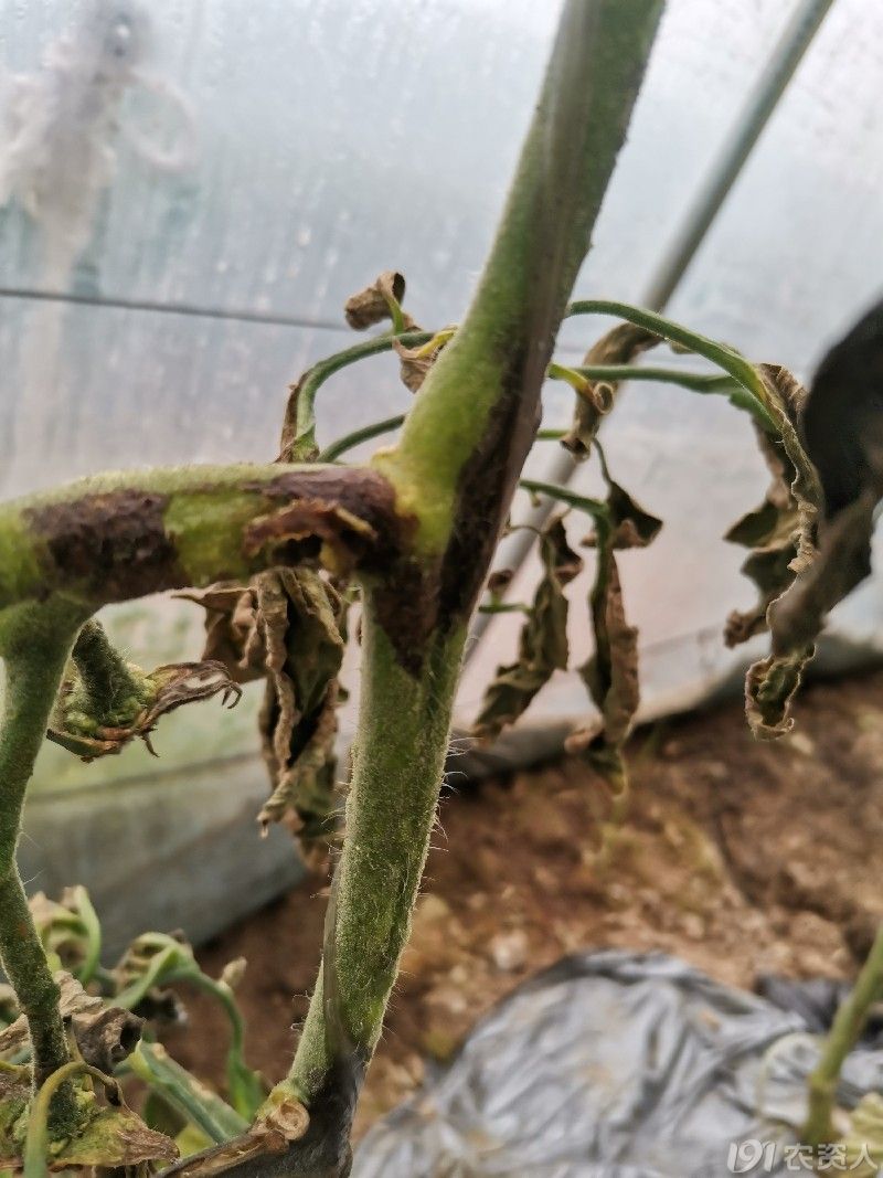 答:是细菌性茎腐病。用你的配方打可以,过五六天再用氯溴异氰尿酸或噻唑锌打一次。同时注意防治害虫,细菌是通过伤口感染的。