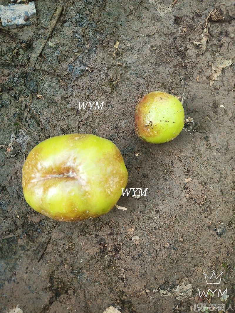 答:您好,晚疫和灰霉病叶片和茎上都有类似的症状。如果是晚疫的话,果上应有云纹斑了。具体确定还要看是否有毛或霉层,有霉层的是晚疫,下面是晚疫病病果。