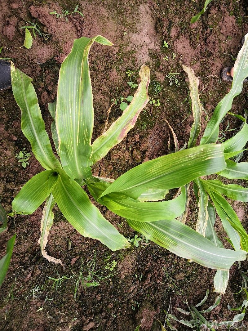 四、玉米大面积出现叶片黄化问题,请教是什么情况?没有打除草剂