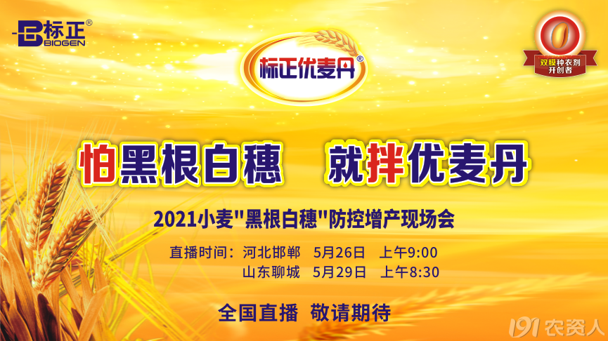 怕黑根白穗,就拌优麦丹—2021小麦“黑根白穗”防控增产现场会,于5月26日在河北邯郸、5月29日在山东聊城隆重召开!会议就小麦茎基腐病、纹枯病等根部病害,给广大种植户朋友带来解决方案、传递种植管理经验。实地观摩,更有VR直播,不在现场也能带你领略360度全景视觉盛宴!