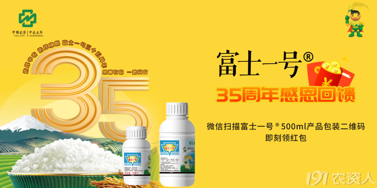 为祝贺富士一号®在中国正式登记35周年,中农立华特此在2021年6月1日-2021年8月1日期间,为新老客户送上感恩福利!在此期间,凡购买富士一号®500ml规格用户,可微信直接扫描产品包装瓶二维码,进入“富士一号35周年感恩回馈”小程序,进行抽红包活动。扫码抽奖百分百中奖,千万不要错过哦!