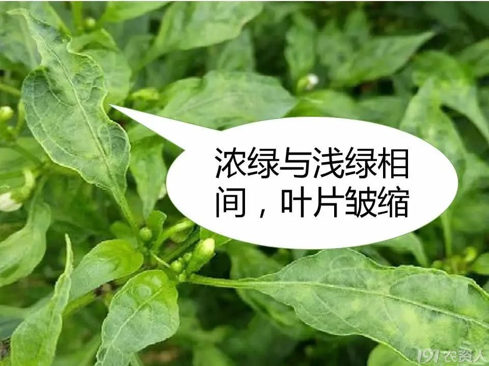 1.花叶型,病叶上出现明显的浓绿与浅绿相间、叶片皱缩变形的症状;