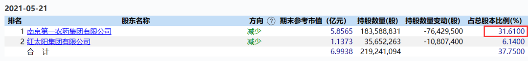截至2020年5月21日,南一农集团所持公司股权从51.75%减少至31.61%。