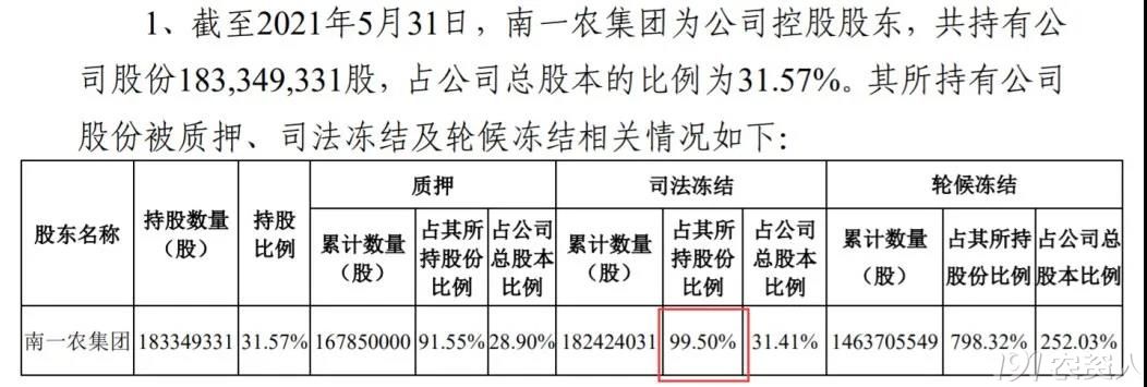 南一农集团表示,自己接近全部的股权都已经被司法冻结。