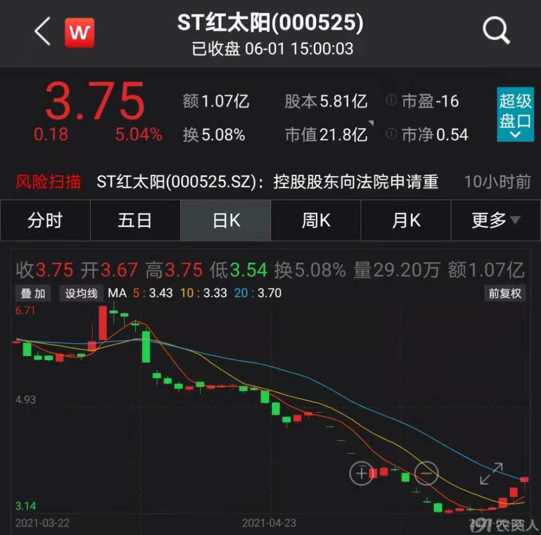 截至5月20日,ST红太阳仍有4万多股民。