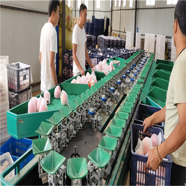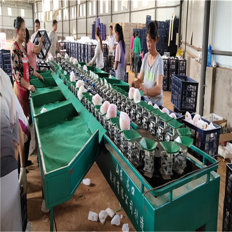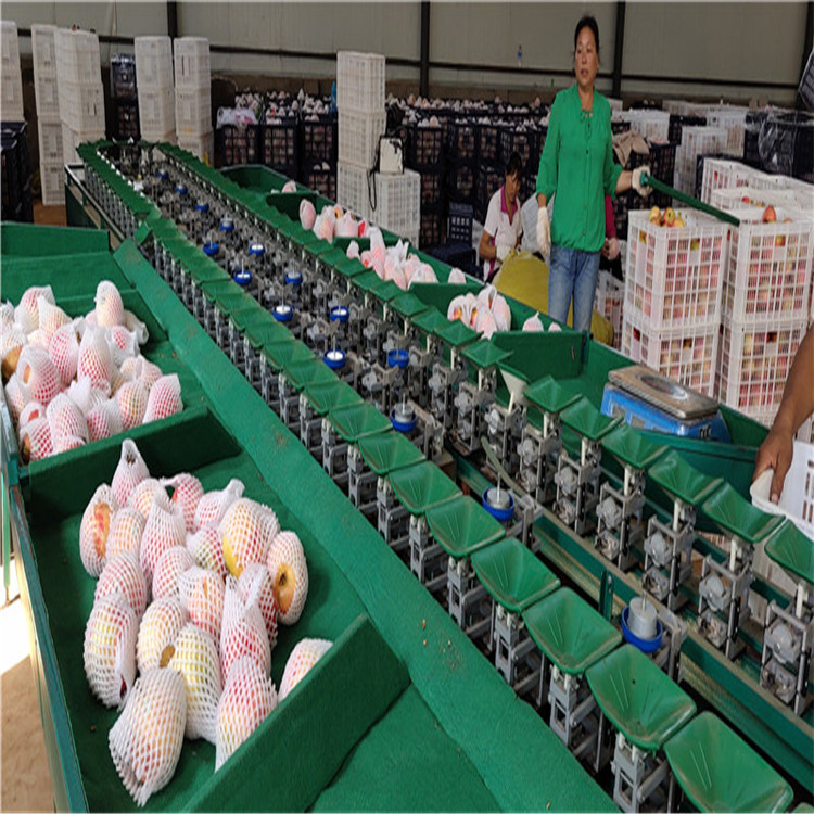 分拣重量区间:20-1500克(备注:运行轨道和下料斗中都铺设海绵垫,且下料斗的坡度设计合理,保护果实在分拣过程中不受碰损;还可以将下果槽改装成下果输送皮带,皮带将果实输送至果实箱或果实袋中。)