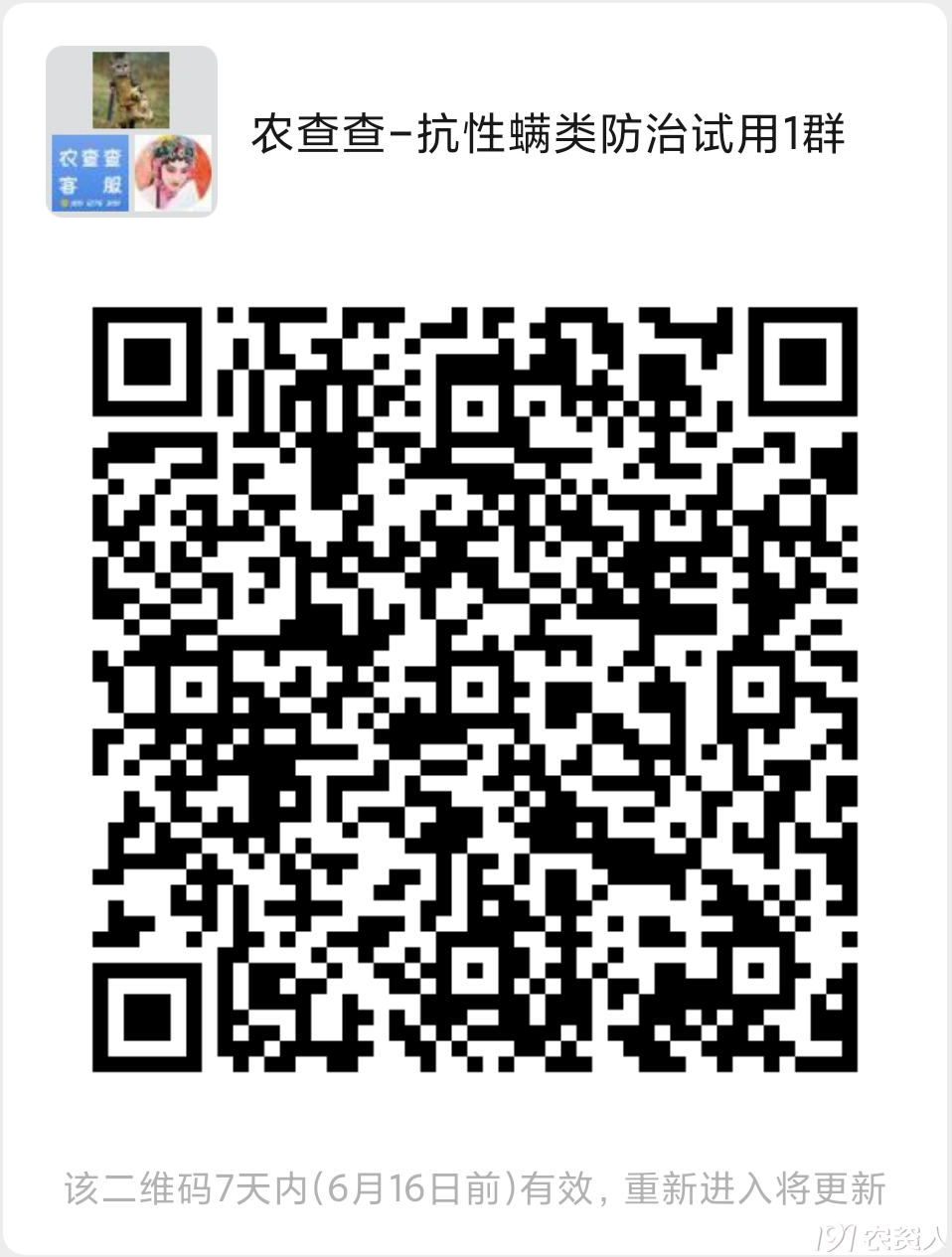 关于抗性螨类,大家可以在留言区或者进入微信群说说自己的观点与见解,凡留言者均有机会获得农查查免费提供的抗性螨类样品福利套餐一份,数量有限,先到先得!欢迎大家积极交流探讨。