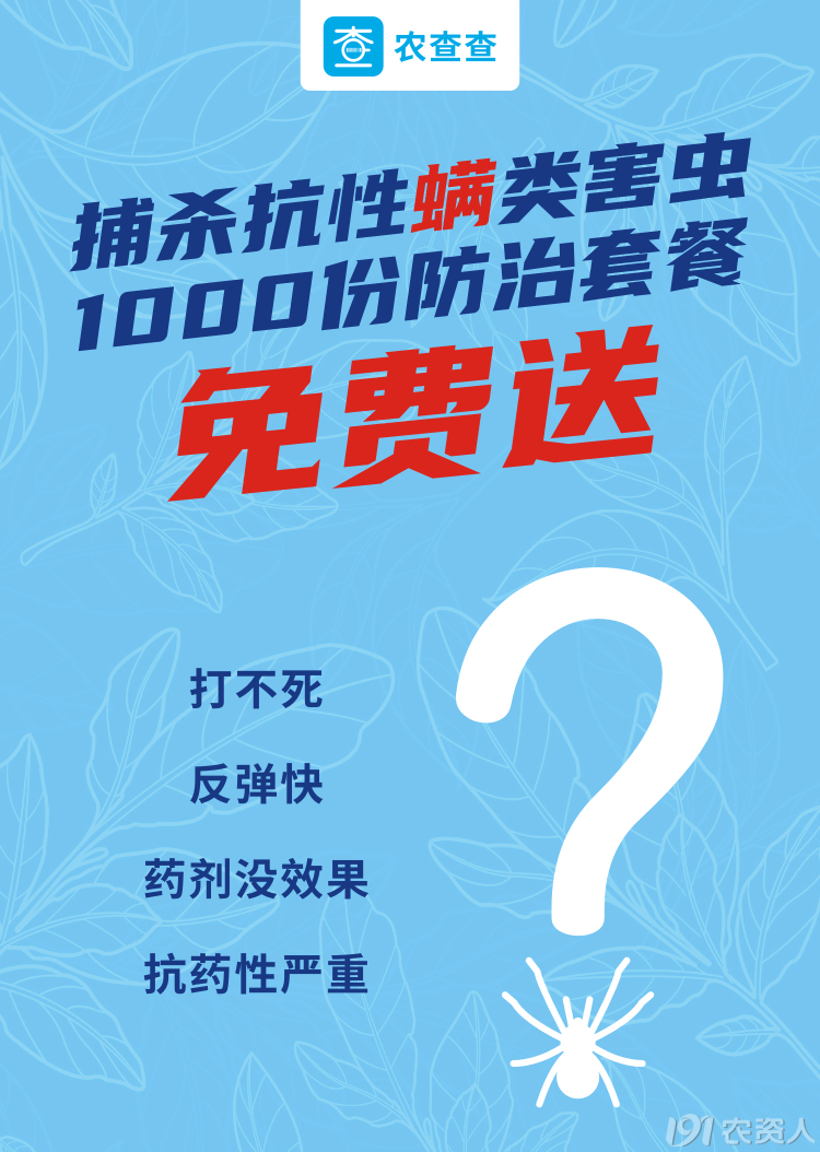 近日,农查查平台为了深入了解种植户防治抗性螨类的痛点难点,为有效解决抗性螨类的防治问题,现推出样品福利套餐免费试用活动。