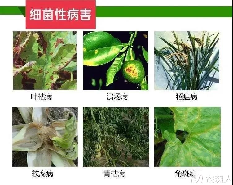 细菌性病害常用防治药剂:中生菌素,喹啉铜,春雷·中生,春雷·喹啉铜,春雷·溴菌清,氢氧化铜,琥珀肥酸铜,精甲·王铜,甲硫·噻唑锌等。