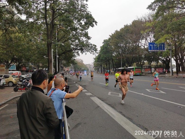 也注意到文武双全的马拉松网红小哥林琳,估计他的配速是6分30秒,跑完全马要接近5小时,他经常到各城市报名参加马拉松,这样的速度显得不快,不知是不是看错人。林琳对每个跑过的城市都有美好的评价,总能看到最有特色与美的一面,是跑马中最有文采与朗诵才华的其中一位。
