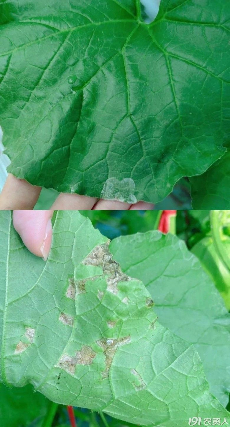 哈密瓜细菌性角斑病病害症状:全生育期均可发生