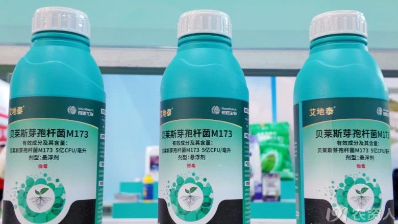 展台核心位置,两款全新的生物农药产品吸引了专业观众的重点关注。威全尽®作为全球首款成功产业化的哈茨木霉可分散油悬浮剂,依托独家高分子油囊包裹技术,在灰霉病、霜霉病等病害防治中展现出高效防控与生态安全的双重优势。同为亮点的艾地泰®,是国内首款靶向细菌性病害的贝莱斯芽孢杆菌悬浮剂,通过“快速成膜、多重抑菌、持久定植”三重机制,高效防控青枯病等顽固病害,展现了公司在生物制剂技术上的重要突破。