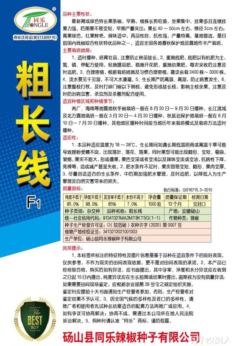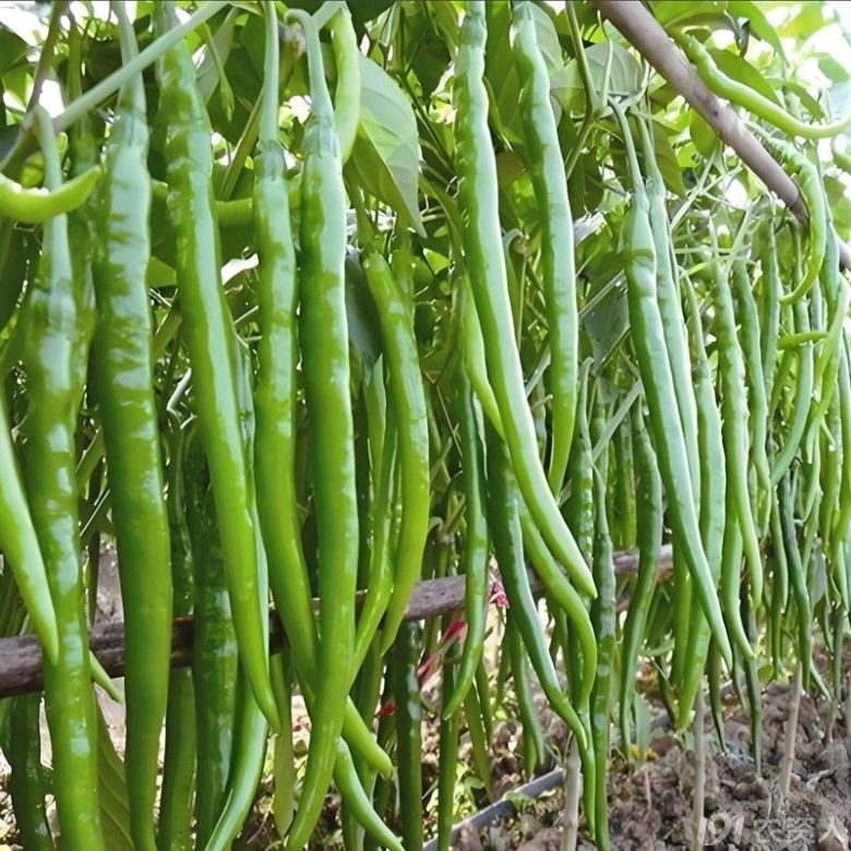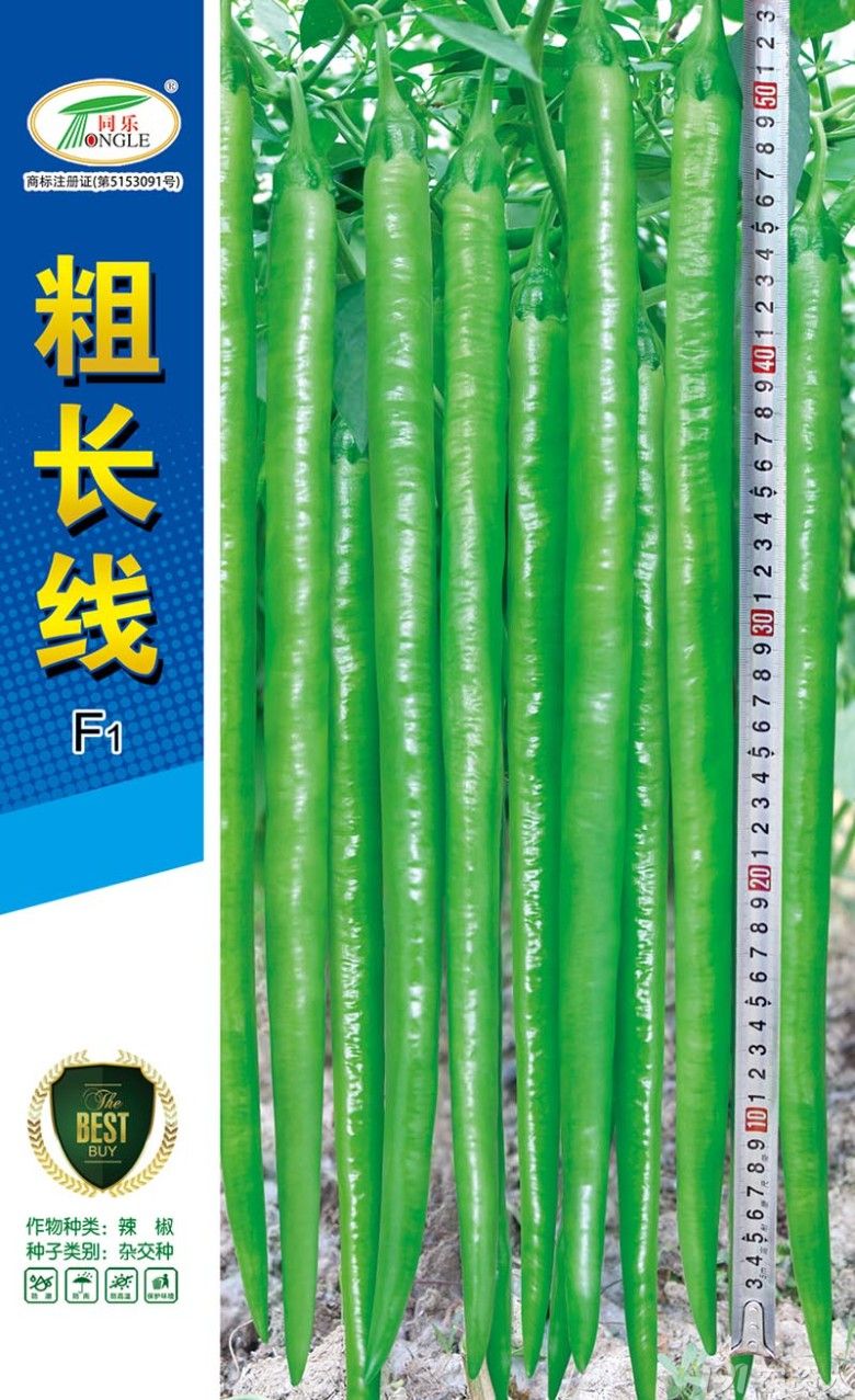 粗长线是特长果条椒品种,其特点是长、粗、高产、早熟。果长40-50cm左右,横径2cm左右。坐果集中,挂果多且连续挂果能力强,后期果不易变短,早期产量突出。青果绿色,红果鲜艳,辣味适中,商品性好,抗性强,产量特高,基地首选,是目前国内线椒综合性状特优品种之一。适宜全国各地春秋保护地及露地作丰产栽培。