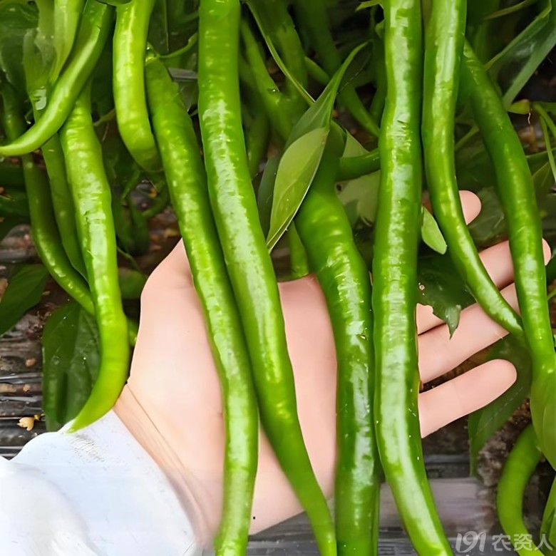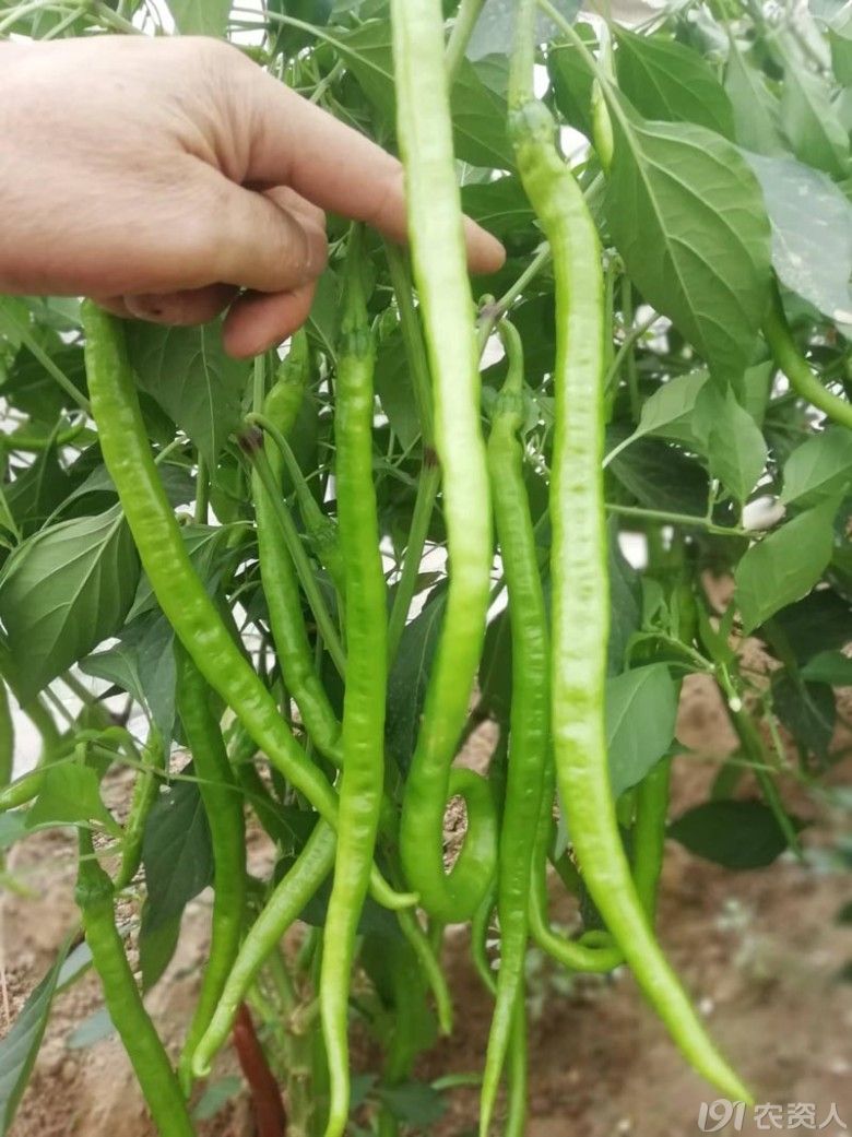 主要栽培措施:1、适时播种,培育壮苗。注意防止秧苗徒长。2、重施底肥,底肥以有机肥为主,氮、磷、钾配方使用,轻施提苗肥,稳施开花肥,重施结果肥,每次采收后注意及时追肥浇水。3、合理密植,根据栽培措施及习惯合理密植,建议亩栽2400株-3000株。4、浇水要见干见湿,不可大水漫灌。5、生长期严防高温、高湿,防止病害发生。6.注意整枝打杈,及时打掉门椒以下侧枝,避免形成徒长枝,影响主枝坐果。注意及时防治病虫害,杀虫剂及杀菌剂配合使用。7、因该品种果型特长,种植时需要架起或吊起枝条,以避免压断枝条或者触地。