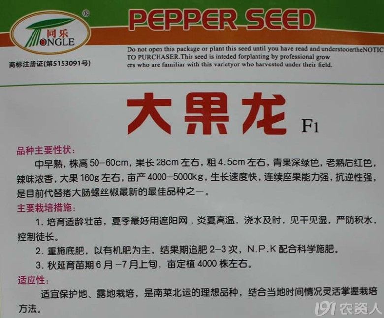 大果龙椒适应性强,全国大部分地区均可种植,既可露地种植,也可大棚及小工棚秋延迟栽培,连续坐果性强,青椒时即可采摘上市,红椒时也可以销售。经在全国多点试种,表现良好,深受农民欢迎。